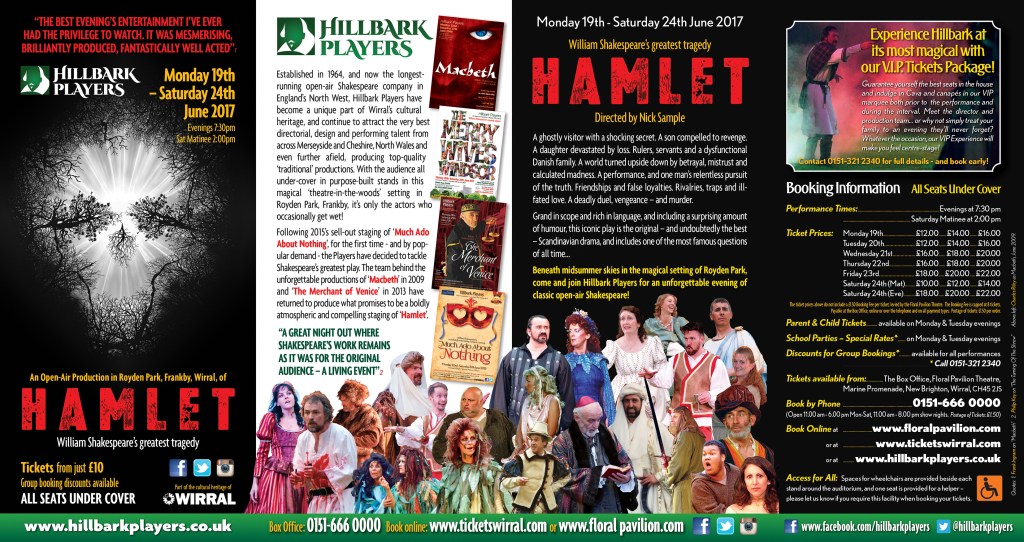 If you’ve ever thought: To go, or Not To Go…. to see Hamlet by www.hillbarkplayers.co.uk consider this…. If you’ve never seen Hamlet, give it a go, Hamlet is rarely performed outside of London or Stratford this is a unique opportunity to see the play in the magical and atmospheric location of Royden Park, Frankby, Wirral.